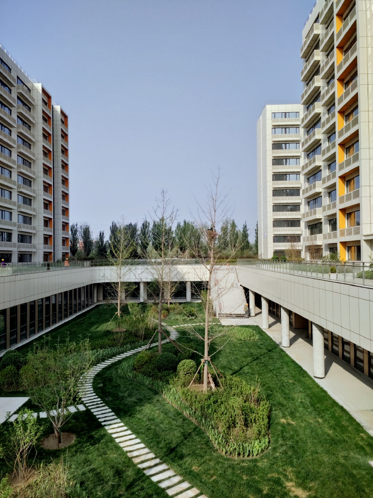 植树活动结束以后,曹淑敏、徐惠彬等视察了正在建设中的沙河校区5-9公寓和西区食堂项目、下沉庭院景观,和已经开工建设的沙河校区留学生及会议中心项目。行进中,校园规划建设与资产管理处处长对学生宿舍区域B1层“梅、兰、竹、菊”4个不同主题的下沉景观庭院分别做了特别介绍。