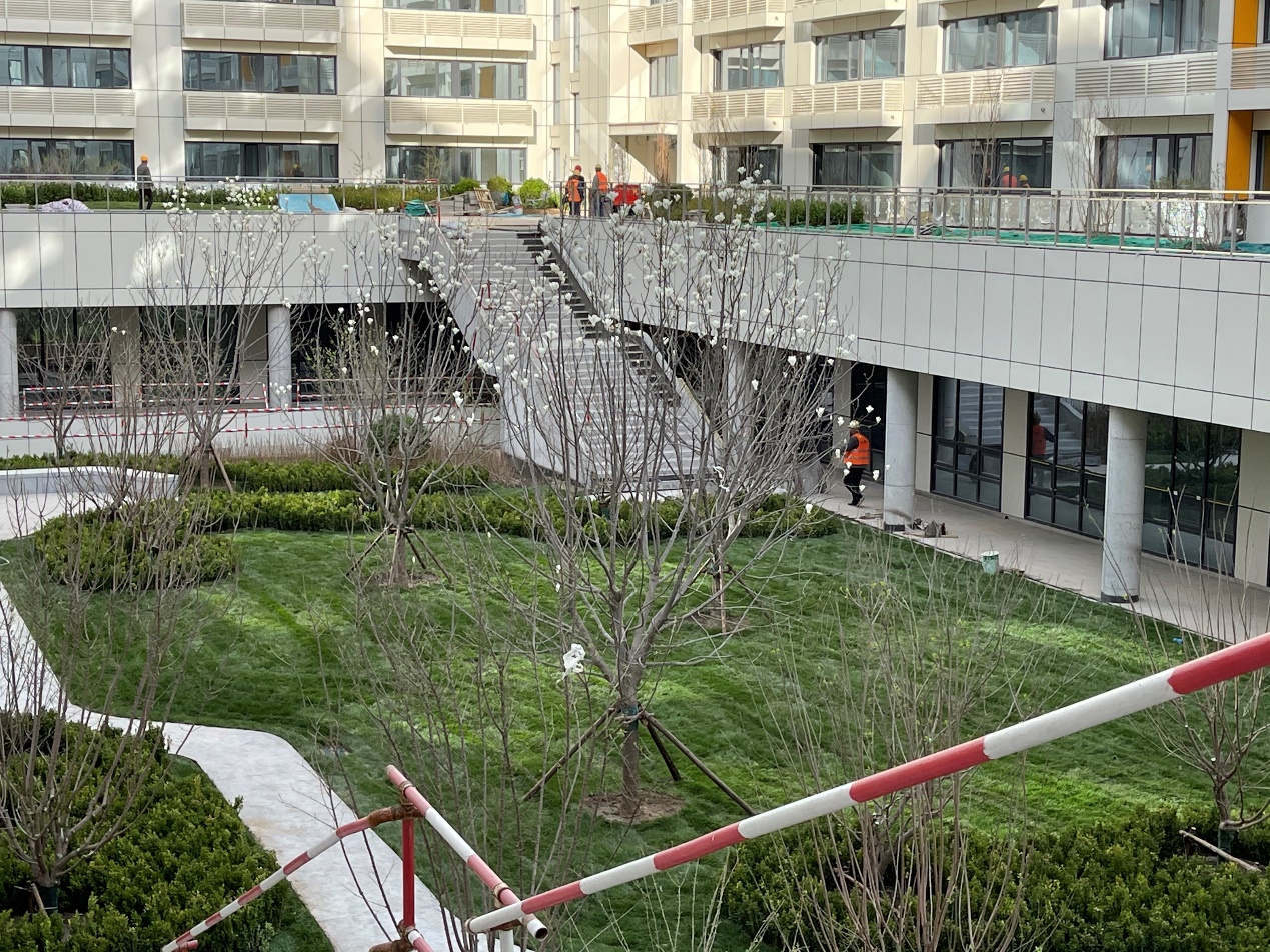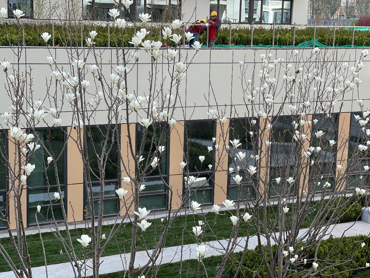 “红梅绽放迎佳节,喜鹊登枝瑞气来”,春天是百花齐放的季节,随着室外景观施工队伍的日夜奋战,以“梅”、“兰”、“菊”为主题庭院内的花儿竞相开放,娇嫩优雅的白玉兰、娇艳动人的海棠花,只见他们抬抬头,争先恐后地纵情怒放,让人流连忘返。