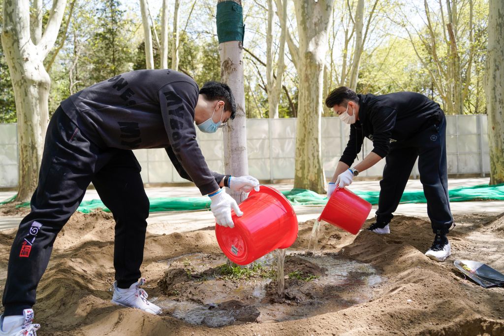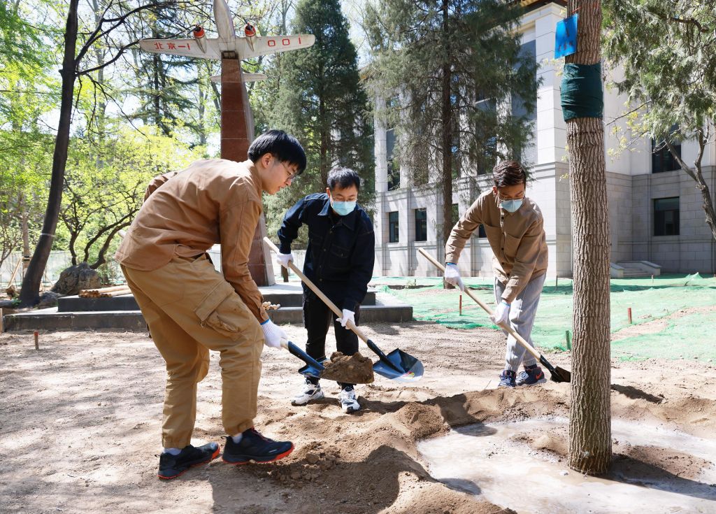 徐惠彬等一行来到植树点,和师生一起扶树稳苗、挥锹铲土、培土围堰、提水浇灌……现场一派热火朝天的景象,大家干劲十足,合力种下元宝枫、黄栌、银杏、槭树、丁香、红枫等树种20余株。植树过程中,徐惠彬与同学们亲切交谈,勉励大家不负韶华,早日成为祖国栋梁之才。徐惠彬还详细了解了主楼周边绿化景观提升进展情况,并强调要通过整体规划提升空间品质,打造具有北航特色的校园绿化景观,为师生构建交融、互动的室外环境空间。