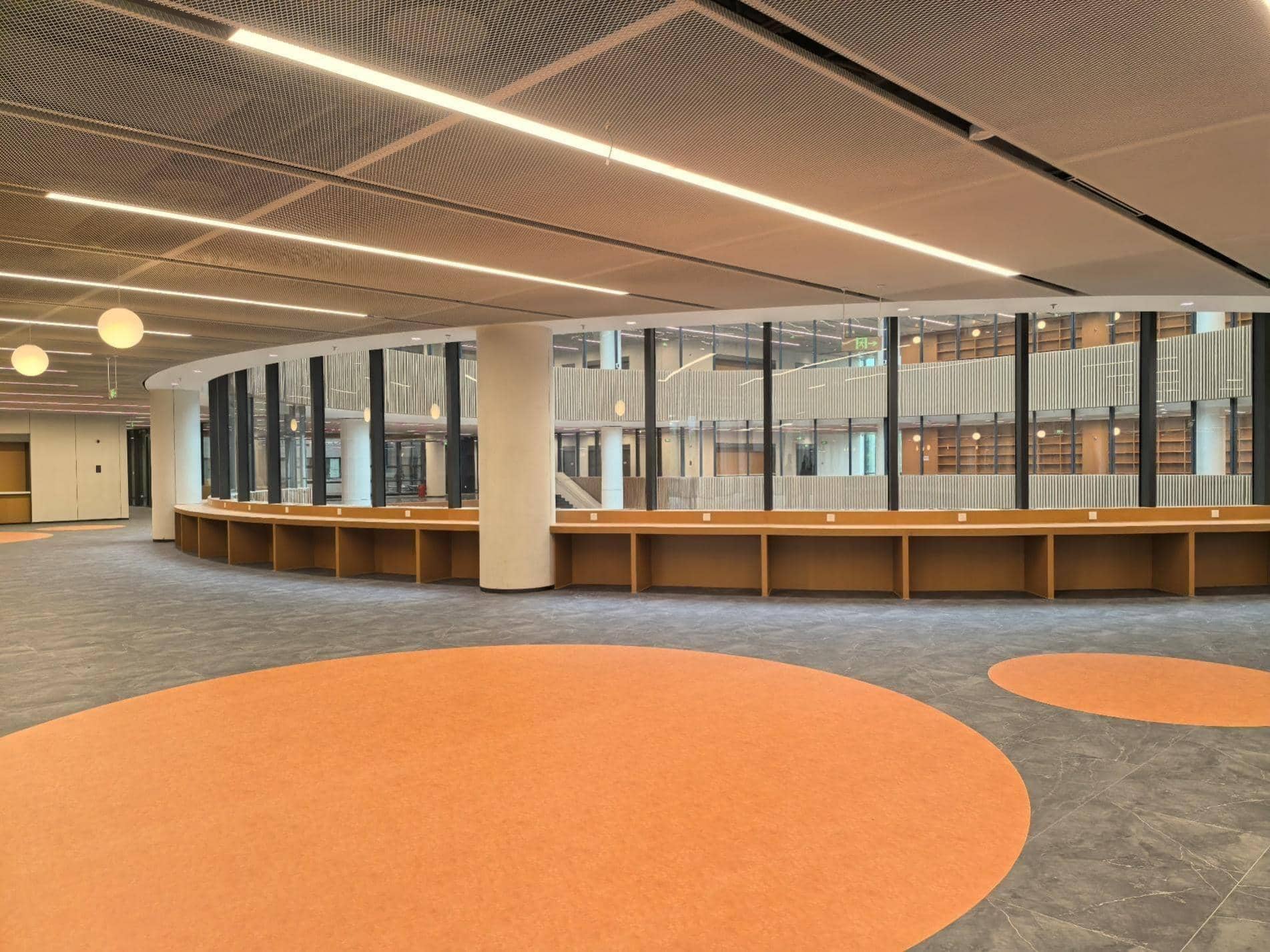 图书馆设计容纳藏书248-307万册、档案30-50万卷、3500余个阅览座位。其内部规划多功能区域,涵盖多风格阅览区、研讨室、自习室、咖啡区、报告厅、展览区等,有效提升空间利用率与灵活性,满足从静心研读到交流协作的全场景需求,支持多元化活动开展,为学校师生打造集知识获取、文化传承、学术交流与创新孵化于一体的现代化知识社区,为学校加快建设中国特色、世界一流大学提供强有力的支撑。