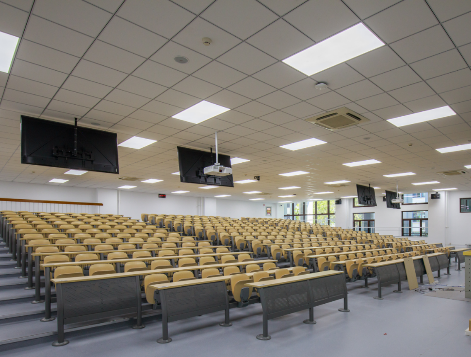 本次主M楼局部装修改造围绕主楼群现代化教学教育中心功能定位,对建筑物外立面、屋面和楼内部分设施进行了修缮,改造内容包括但不限于外立面清洁维修、屋面防水新做、室内粉刷、卫生间整体改造、室内外门窗、吊顶、灯具更新等。项目于2023年3月开工,2023年7月竣工,现已投入使用。